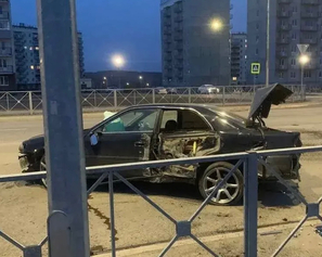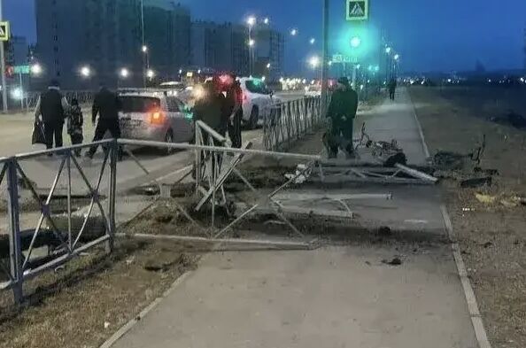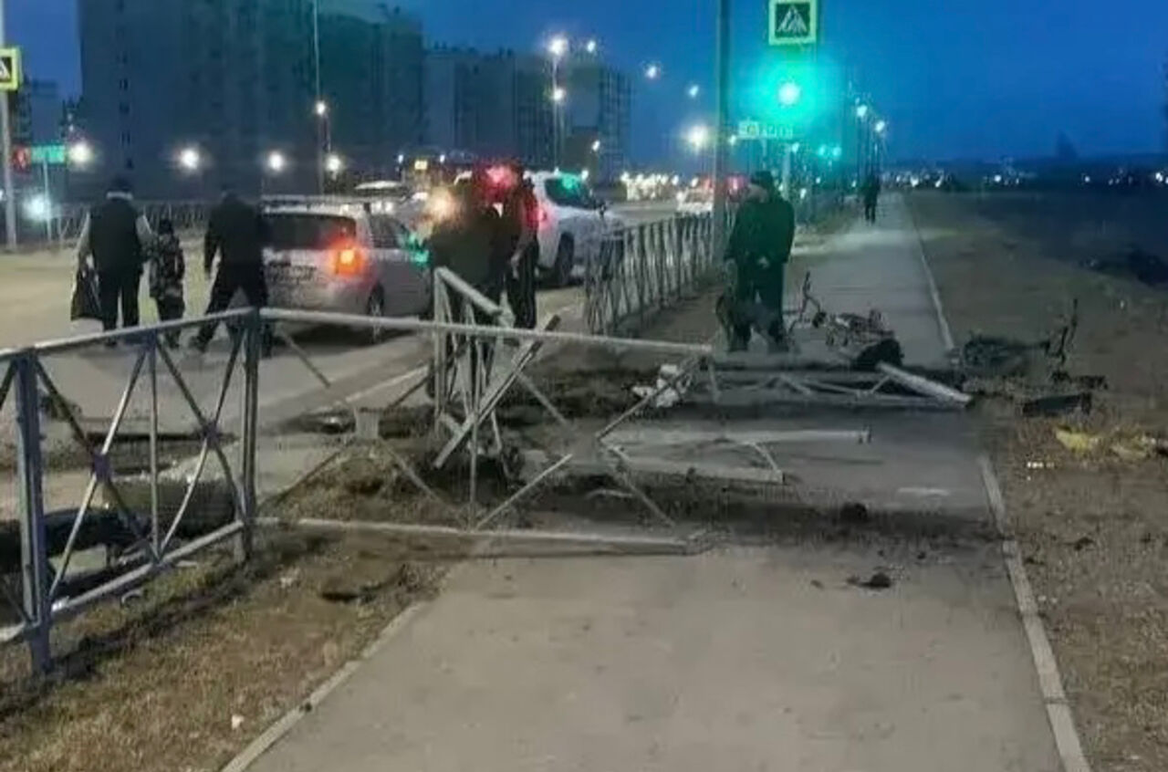 В Новокузнецке автомобиль на скорости протаранил придорожное ограждение и вылетел на пешеходную дорожку.