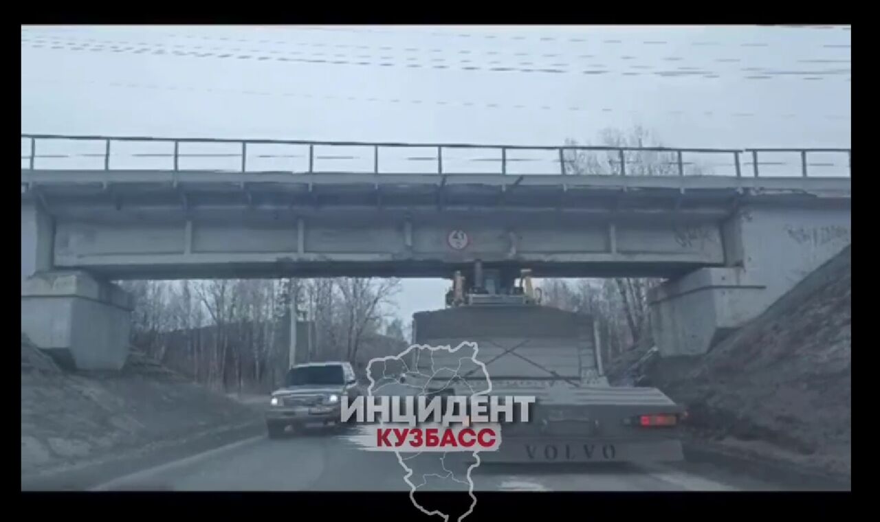 – Вчера около 15:00 в Новокузнецком округе в СНТ "Швейник" грузовик с бульдозером на трале не прошел под мостом по высоте, – сказано в тексте поста.