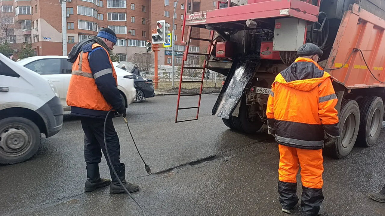 В Кемерове дорожные службы продолжают ямочный ремонт с помощью литой асфальтобетонной смеси.