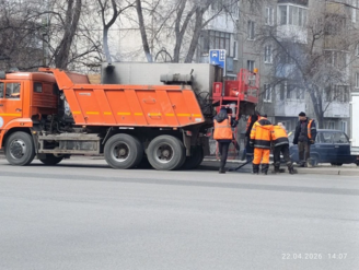 Сегодня асфальтируют на Октябрьском и Ленина. Заливку трещин битумом проводили накануне и продолжают сегодня на шоссе Леонова, а также на улицах: