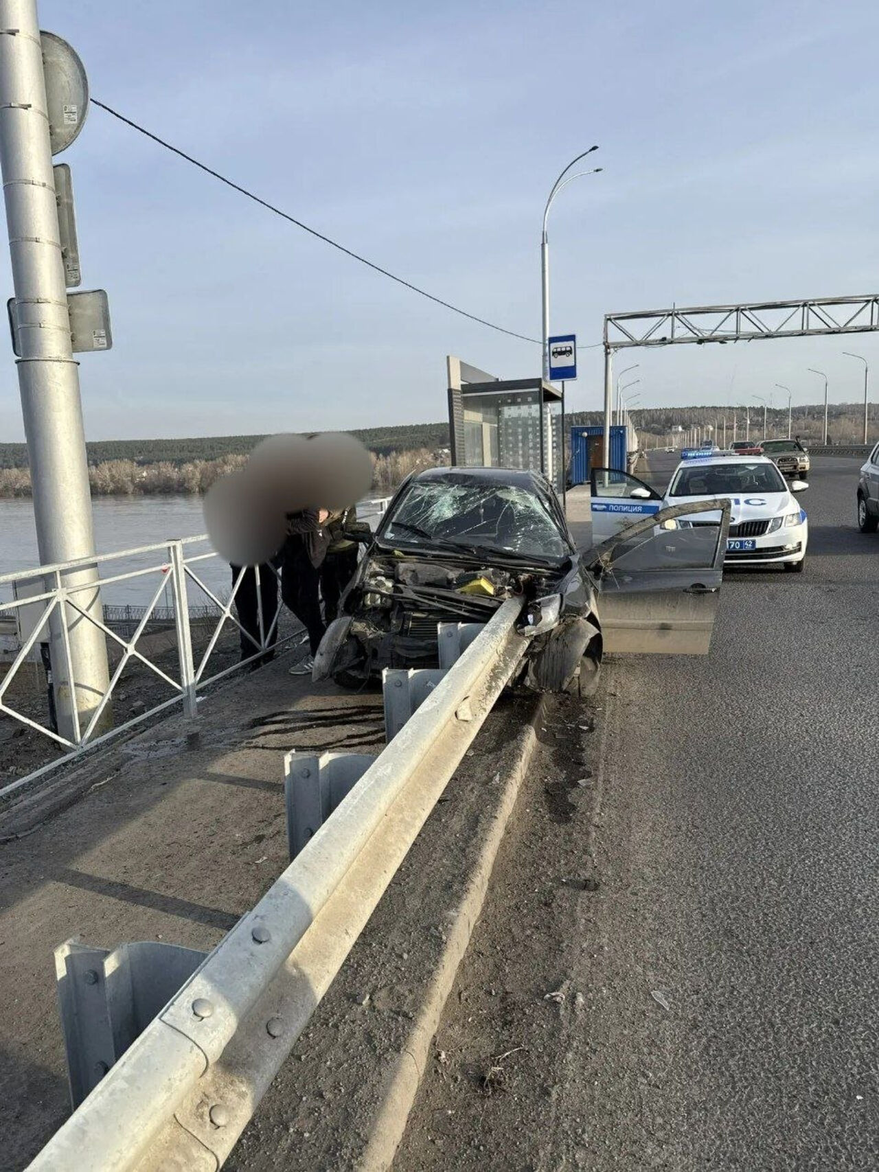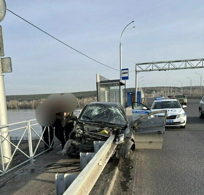 Авария, о которой сообщалось ранее, произошла в воскресенье, 26 апреля, около 7:30 на Кузбасском мосту в Кемерове. Там отечественную легковушку насадило на отбойник.