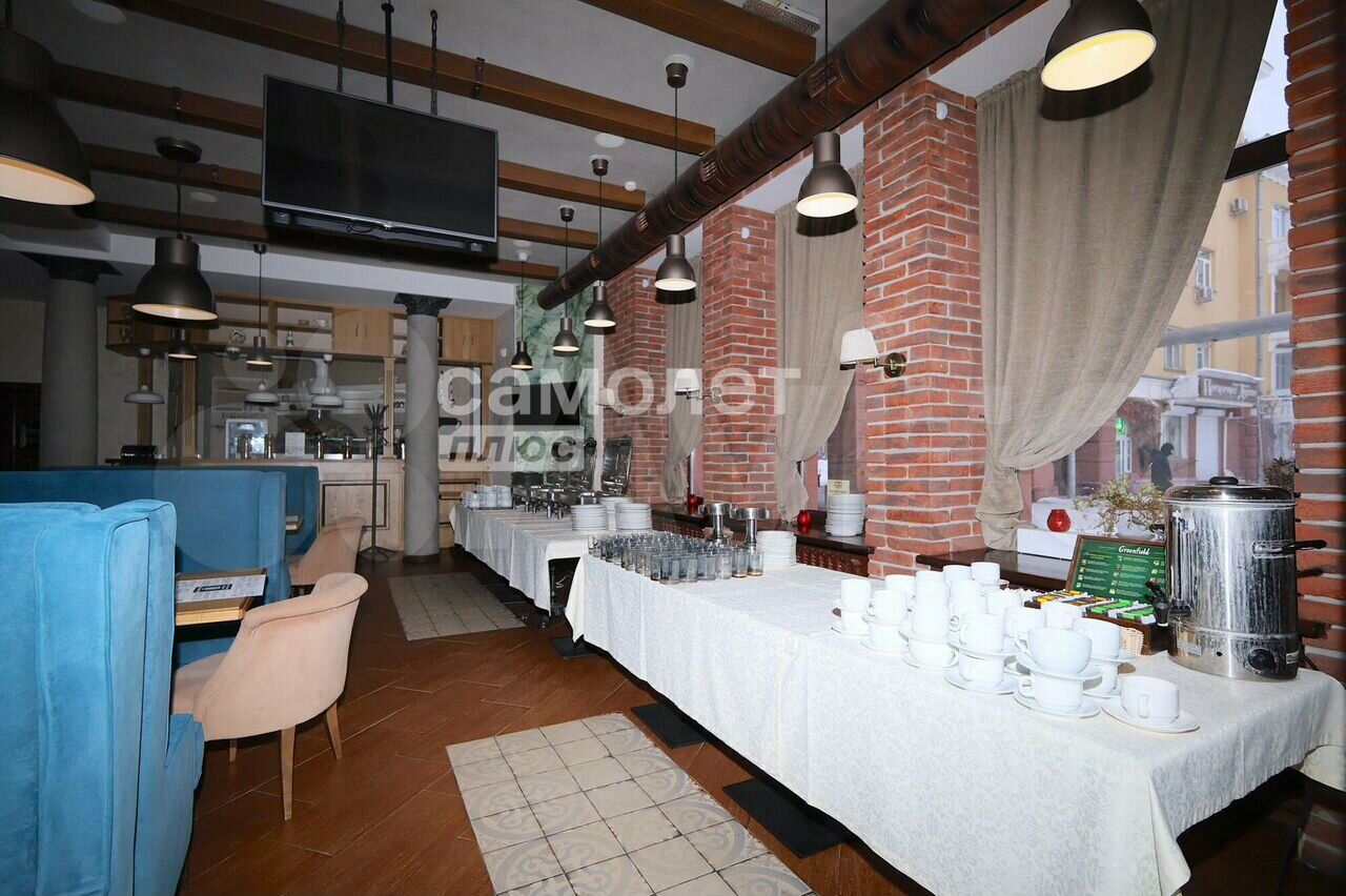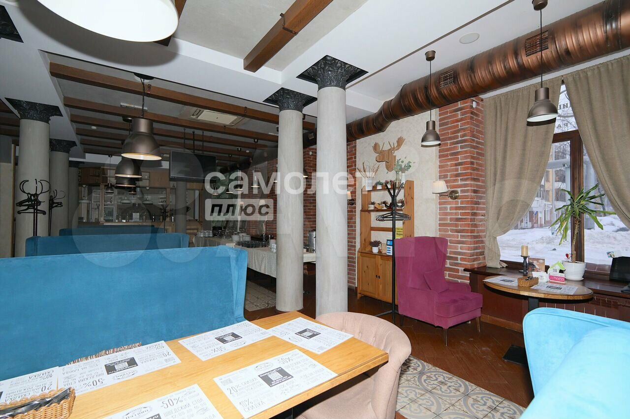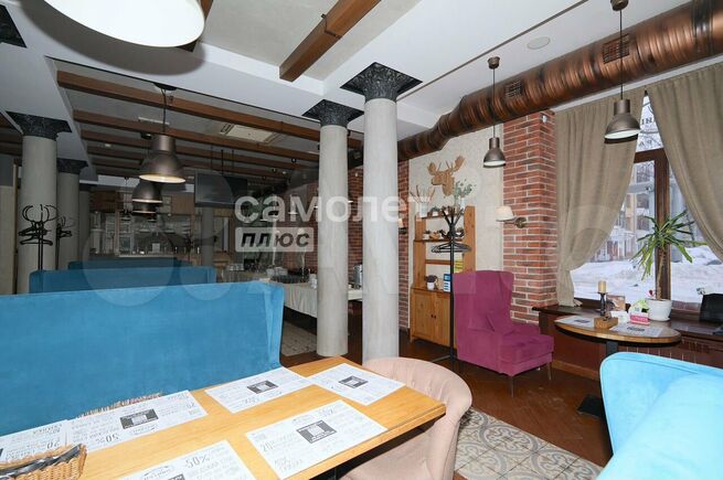 В локации удобный вход и размещение для клиентов и персонала, мощная вытяжная вентиляция, электрика на 110 КВт, а изюминка – витражные панорамные окна и высокие потолки на первом этаже.