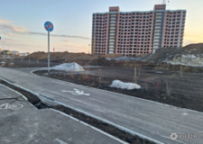 Картина разрушения очевидна: велосипедная дорожка провалилась, а дорожные знаки причудливо изогнуты, словно под действием какой‑то разрушительной силы.