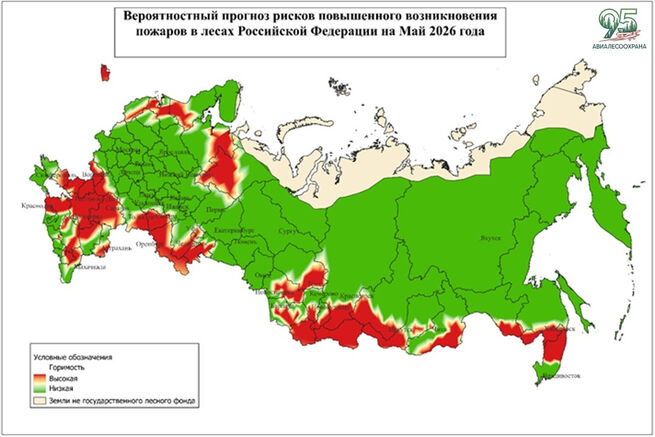 В мае в 40 регионах страны прогнозируются высокие риски ЧС по природным пожарам, сообщает Федеральная Авиалесоохрана.