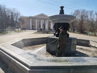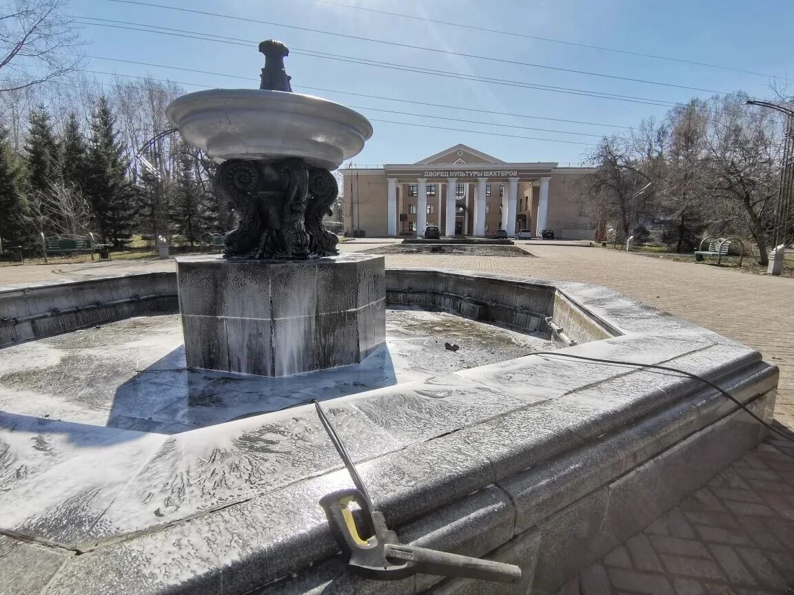 Отмечается, что сейчас в порядок приводят фонтан, который находится в сквере у ДК Шахтеров.