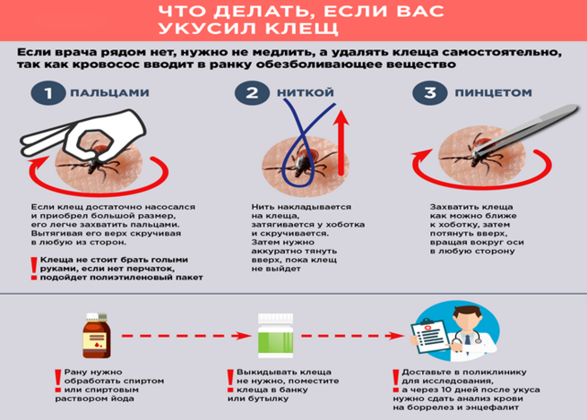 Если вы обнаружили клеща, его нужно удалить. Можно сделать это самостоятельно или обратиться к врачу.