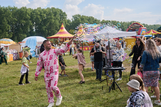 Для детей была организована обширная зона с батутами, сладкой ватой, аквагримом и различными играми. Особой популярностью пользовались батут под куполом с летающими шарами и зона "Алхимиум" с необычными научными экспериментами.
