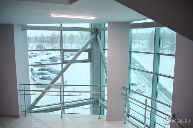 Мы попали на лестницу в горевшем крыле, где до сих пор продолжается мелкий ремонт, пахнет свежей краской и не убраны строительные леса. Если присмотреться к деталям, можно заметить следы копоти. Зато полностью благоустроен вход в тренажерный зал, куда уже возвращаются первые посетители.