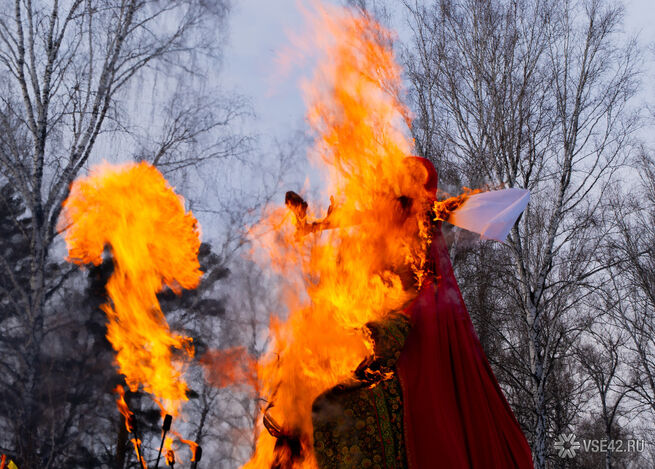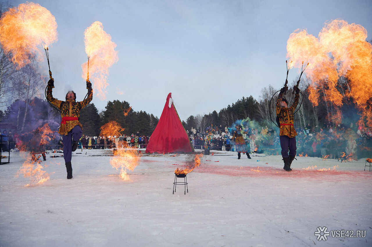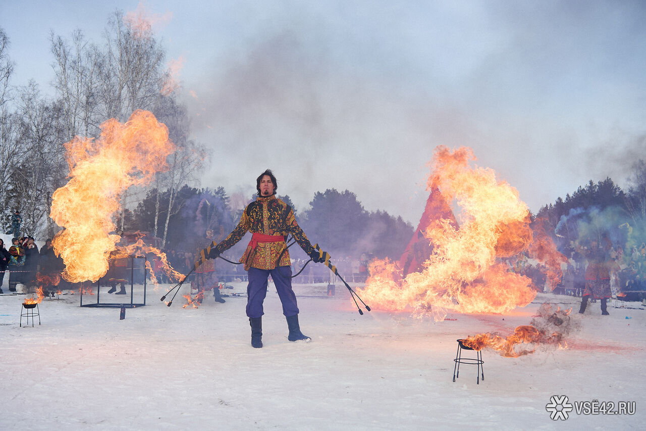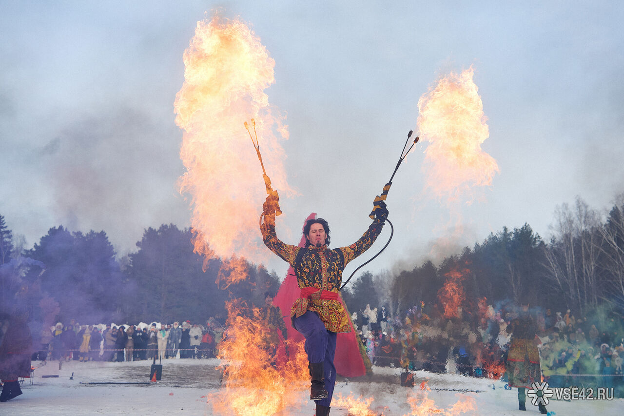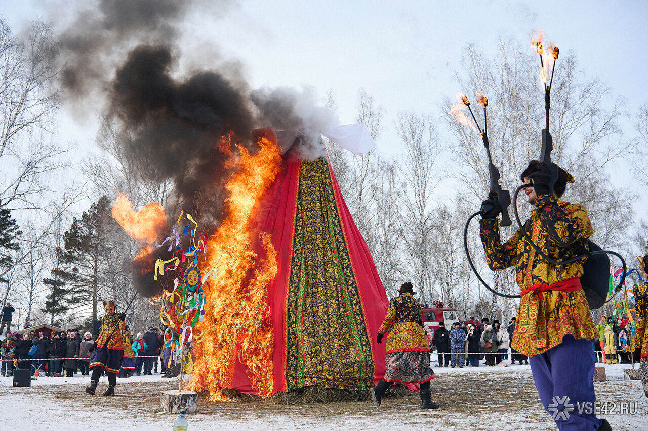 Ключевым событием дня было фаер-шоу, итогом которого стало сжигание чучела Зимы из настоящих огнемётов.