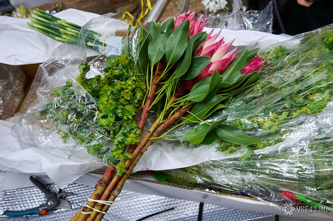 Фотокорреспондент VSE42.Ru заглянул за кулисы студии авторской флористики "Шелли-Холл", чтобы запечатлеть процесс приема цветов.