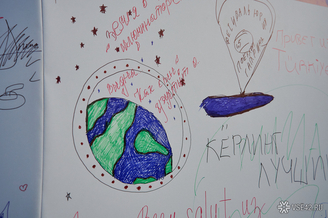 Люди останавливались, рассматривали снимки на фоне космических объектов и сами делали кадры – словно становились частью большой общей истории.